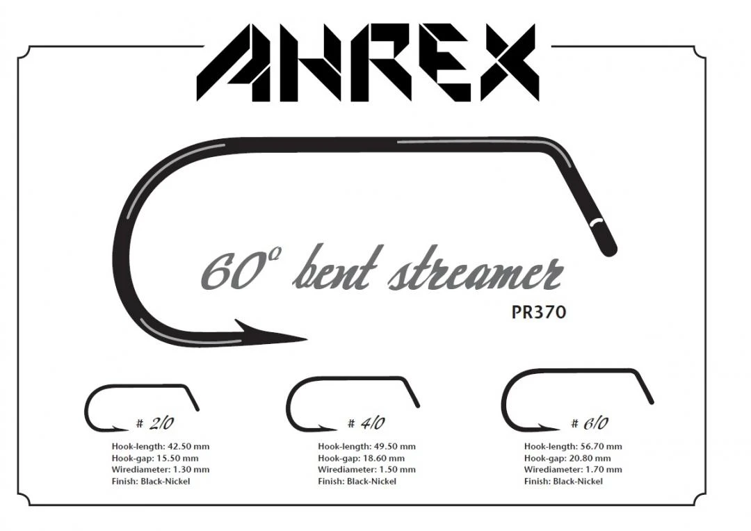De Ahrex PR370 60 Degree Bent Streamer Hooks zijn zware kwaliteit streamerhaken in jighaak-stijl. Gemaakt voor weedless presentaties en het vissen langs de bodem: zware draad, een grote haakopening en de PR370 heeft een bocht van 60 graden in de haaksteel.