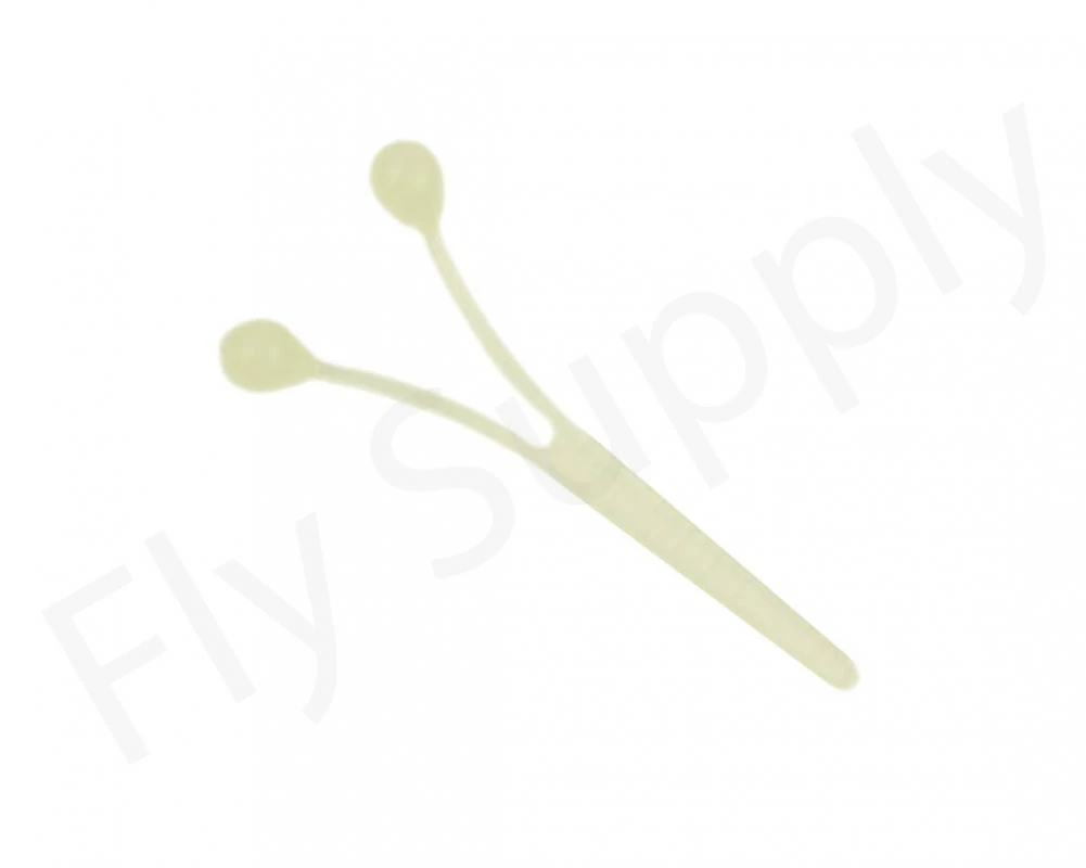 Deze oogjes zitten per 2 stuks op een steeltje. De ogen zitten altijd recht en inbinden is gemakkelijk door het geribbelde vlakke steeltje. Ontwikkeld voor Zeeforel maar uiteraard veel breder inzetbaar voor Bonefish, Baars, Permit, Zeebaars en meer patronen.