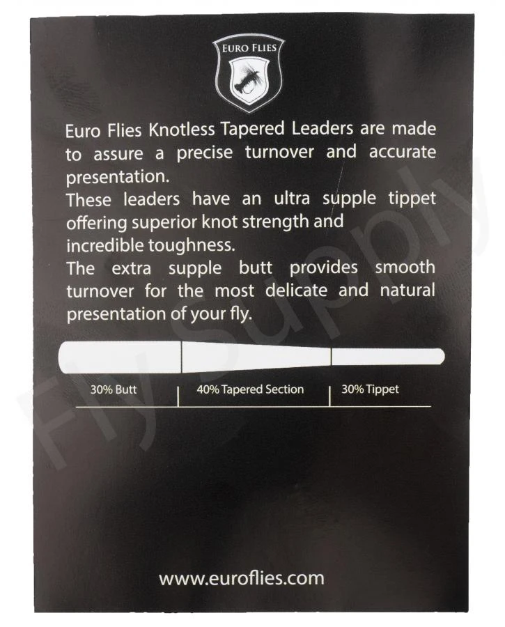 Alle Euro Flies Supple Butt Tapered Leaders zijn voorzien van een lus zodat de leader gemakkelijk aan de lus van de vliegenlijn bevestigd kan worden.