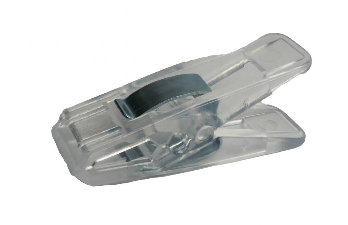 Transparante clip om materiaal in te klemmen zodanig dat je dit in dubbing loops kan inbinden.