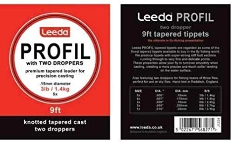 De Leeda Tapered Leader With 2 Droppers 9ft is kant en klaar gebonden voor het presenteren van natte vliegen of teams van meerdere nimfen.