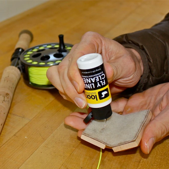 Een schonere vliegenlijn betekent een betere worp en meer vis. De Loon Line Cleaning Tool heeft een schapenvacht pad en twee hardhouten blokken die in elkaar scharnieren om het perfecte transportmiddel te creëren voor het aanbrengen van een lijnreiniger zoals Line Speed, Streamline of Scandinavian Line Cleaner.
