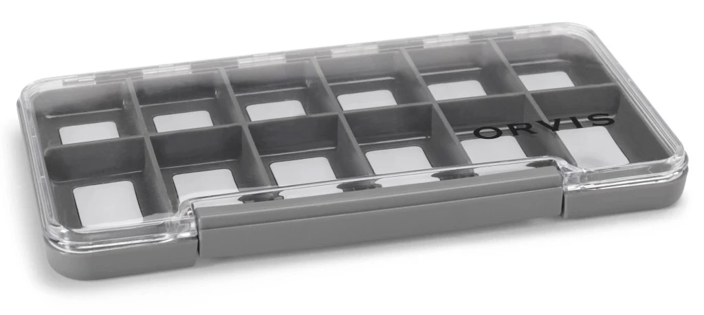 Keep your flies dry, handy, and organized in our Slim Waterproof Boxes. The slim profile makes them easy to pack, while the clear lids keep your choices visible. Magnetic compartments and/or slit foam for easy organization. Secure latch closure.