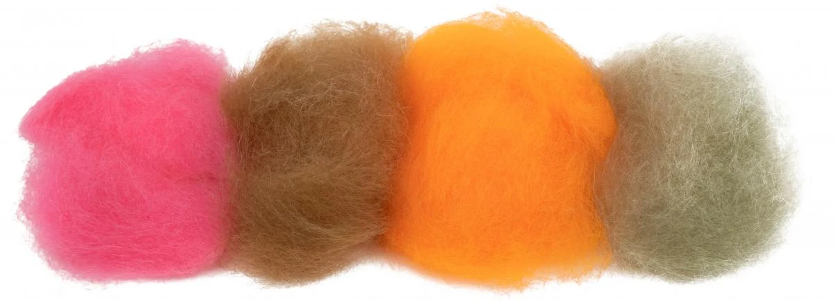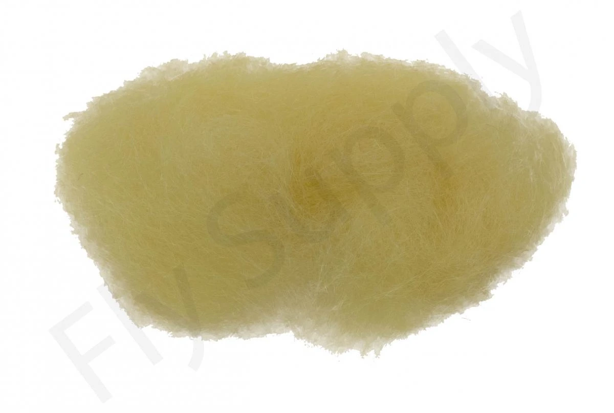 Extremely fine dubbing made of long transparant fibers with a length of up to 50 mm.