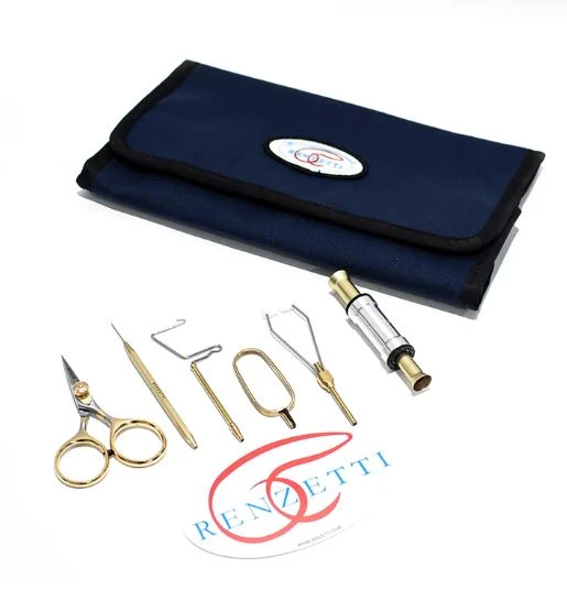 This Kit includes Renzetti Standard Ruby Tip Bobbin, Renzetti Small Dubbing Needle, Renzetti Standard Double Hair Stacker, Renzetti Teaser and half hitch combo, Dr. Slick 4″ Razor Scissors, Dr. Slick Whip Finisher, and Dr. Slick Hackle Pliers, all in a very nice and protective pouch to ensure your tools of the trade are well protected and secured, manufactured in the USA.
