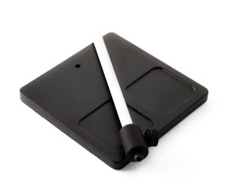The Streamer Pedestal Base weighs about 5 pounds, it measures 3/8″ x 6″ x 8″. it has 2 magnetized pockets, a large pocket, and a measuring indicator. includes the Std Stem Support. Different colors available, visit the Streamer Pedestal Base page for details.