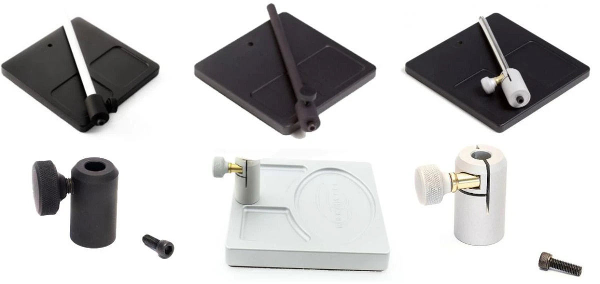 The Stem Supports are interchangeable among the bases and compatible with older models Pedestal Bases. We offer 3 stems supports. The Traveler Stem Support (standard on most Travelers), The Standard Stem Support, (included with Presentations and some travelers) and the Deluxe Stem Support also refer as the Saltwater Stem support is bigger in diameter (included with the Masters and Deluxe Bases)