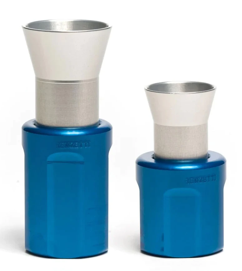 A hair stacker is a tool use to align the tips of hair cut from a hide before attaching it to the fly. It is as simple as putting the fur into the brass tubing, placing the tube into the stacker, and gently tapping a tabletop with it a few times. All of your hair will be aligned and ready to secure to your fly. Made of anodized aluminum and developed by Andy Renzetti and Pat Ehlers.