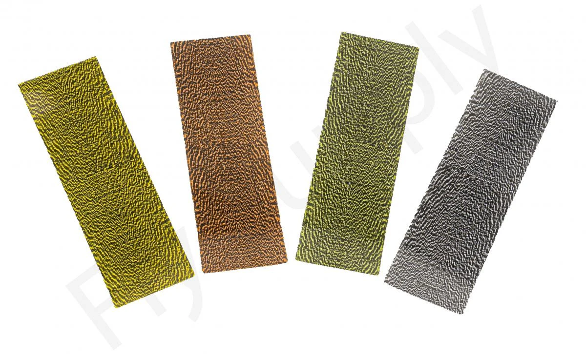 Het materiaal is gemakkelijk in de gewenste breedte te knippen. Toepassingen zijn onder andere nimf vleugels en ruggen voor scuds, sowbugs, crayfish en shrimps.
