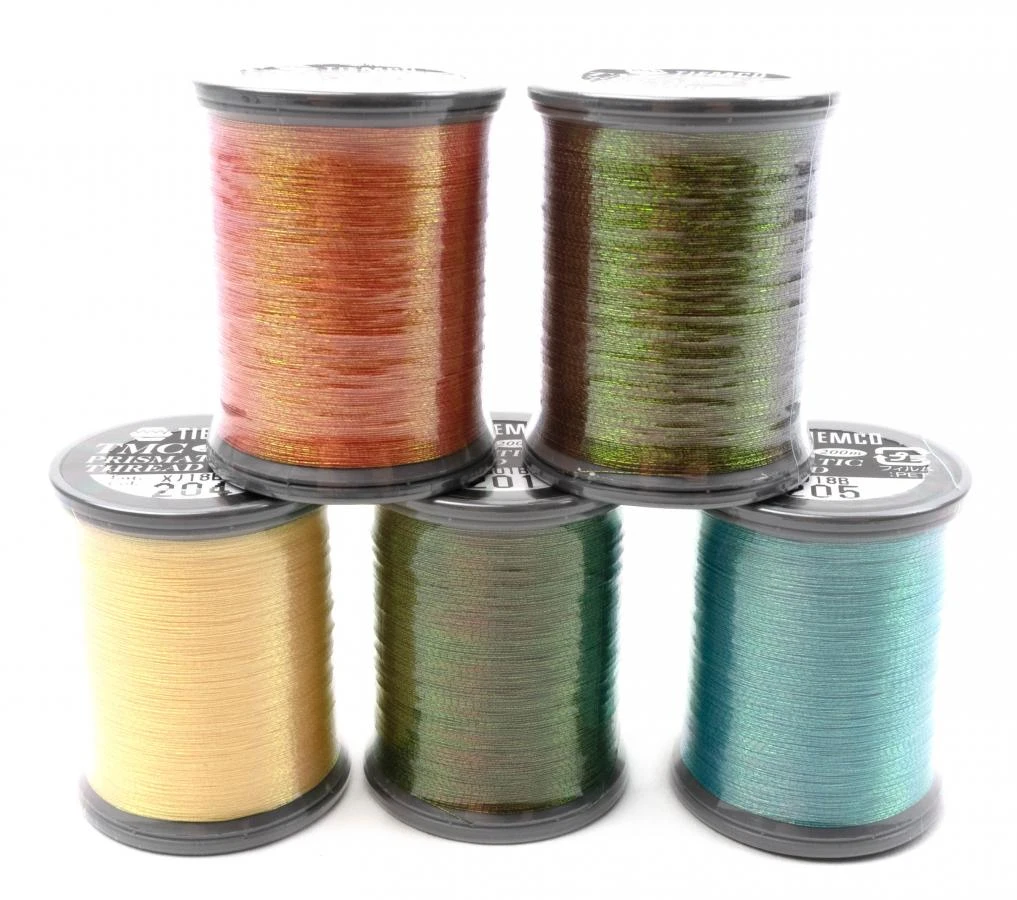 De Tiemco Prismatic Fly Tying Thread 200 Meter is een iriserend gekleurde binddraad voor het binden van droge vliegen, nimfen en kleine streamers.