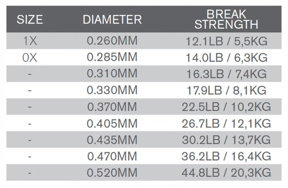 - 7 – 10% hogere trekkracht dan het reguliere Trout Hunter nylon, zowel lineair als op de knopen