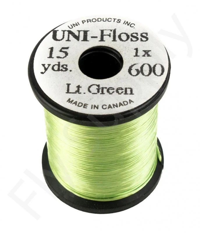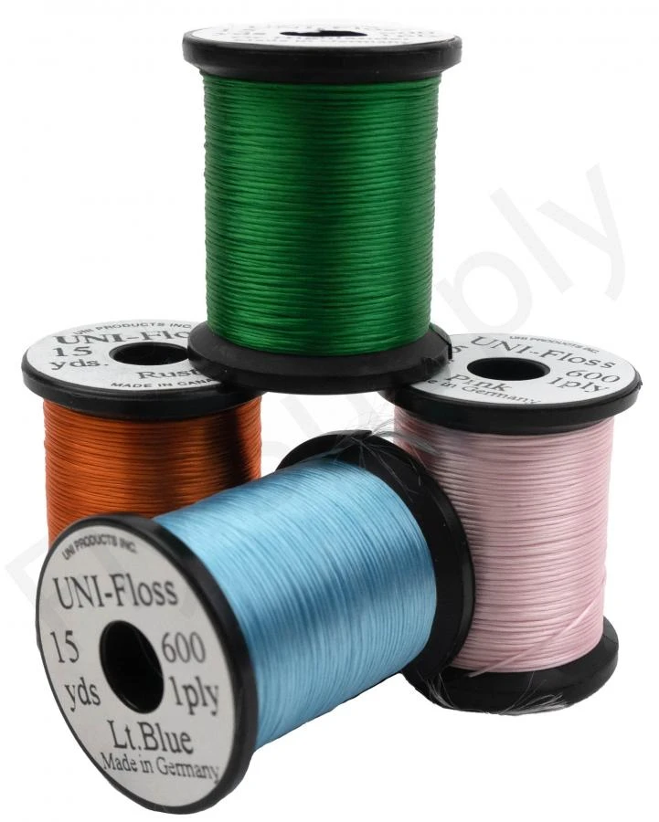 Uni Floss bestaat voor 50% uit nylon en voor 50% uit rayon, het is sterk en glanzend. Uni Floss is een zeer populair, 600 denier dik flossmateriaal dat bestaat uit een enkele vezel.