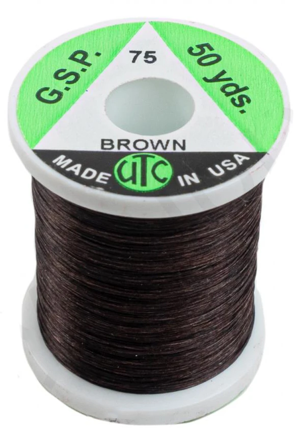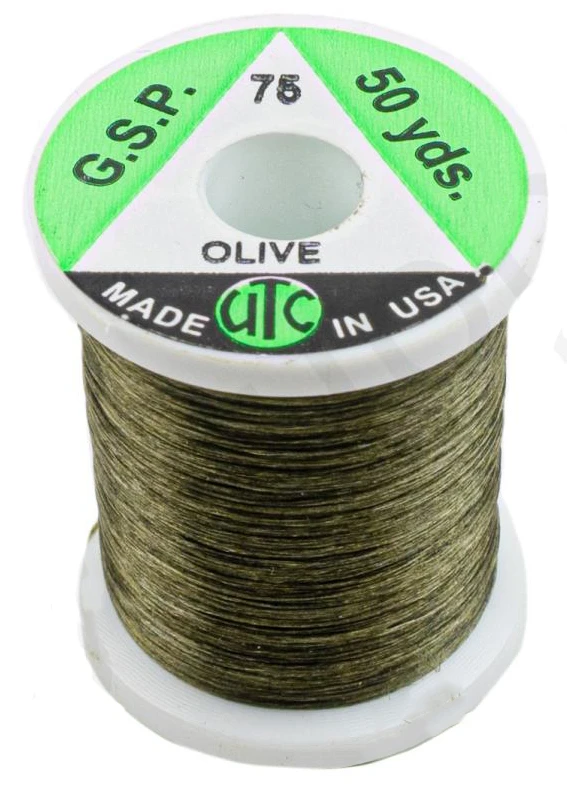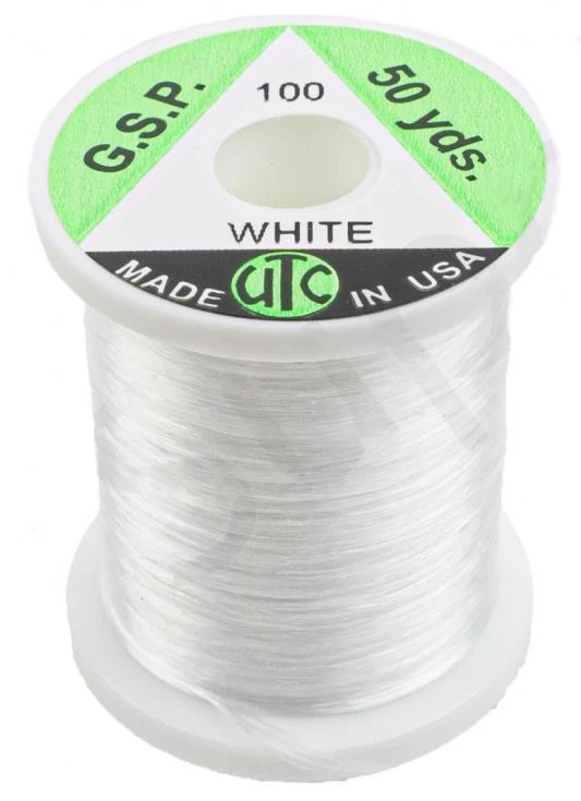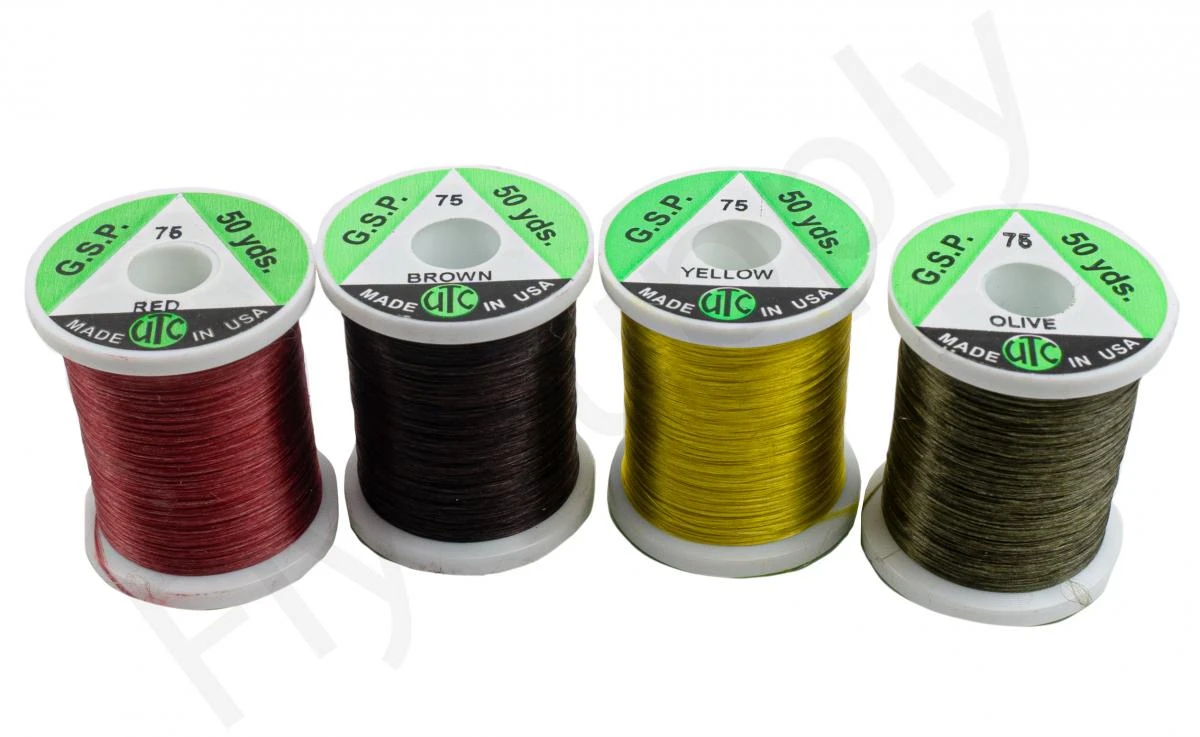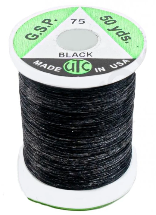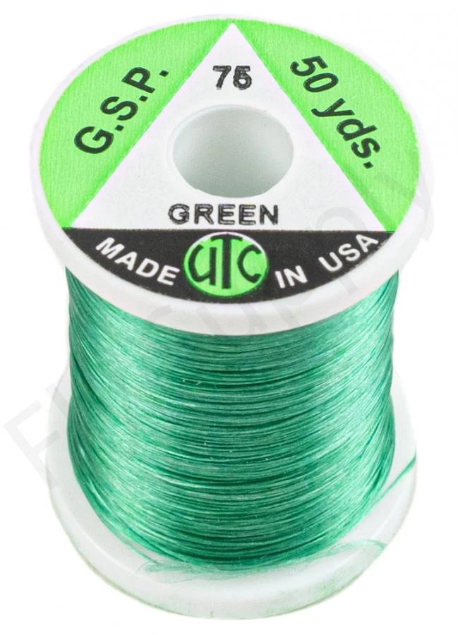 De UTC GSP Thread 75 denier is een 8/0 (75 denier), extreem sterke vliegbinddraad dat vervaardigd is van gel-gesponnen polyethyleen (GSP). De UTC GSP Thread 75 denier is de sterkste binddraad in verhouding tot de diameter en deze kan eventueel op kleur gebracht worden met watervaste viltstiften.