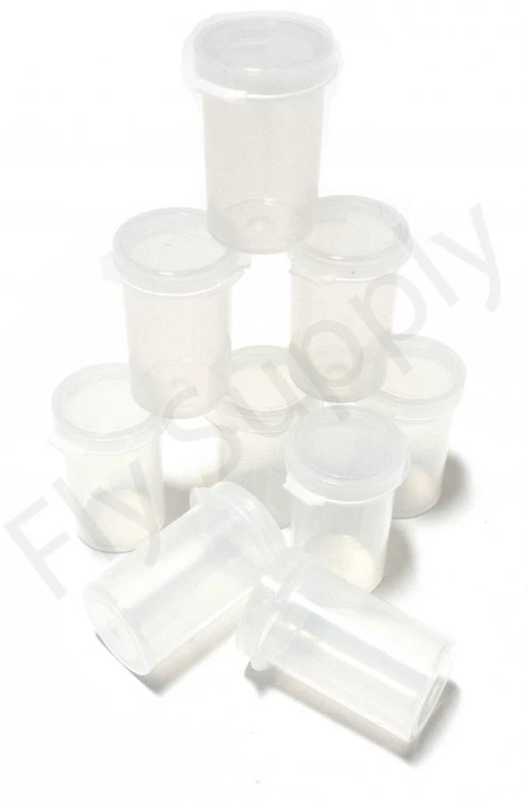Deze kleine transparant kunststof potjes zijn 3,8 cm hoog en hebben een diameter van 2cm. Het compacte ontwerp zorgt ervoor dat er producten zoals haken, goudkoppen, dubbing en andere kleine producten in opgeborgen kunnen worden zonder veel ruimte in beslag te nemen.