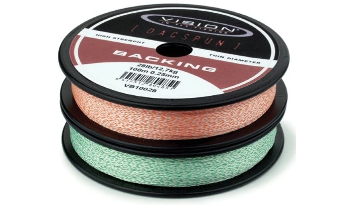 De Vision Dacspun High Strength Backing is een innovatie van Vision. Deze backing is een kwart sterker en toch een kwart dunner dan een gewone Dacron backing. De Vision Dacspun High Strength Backing is een combinatie van sterke Dyneema-vezels en Dacron.