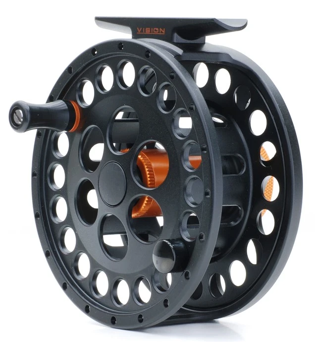 De Vision Kalu Black Reel Orange Knob vliegenreels zijn voorzien van een volledig afgesloten slipsysteem met carbon remschijven uit Amerika. De slip is soepel in te stellen en de kogellagers uit Japan zorgen ervoor dat Vision Kalu Black Reel Orange Knob soepel loopt. Er zijn in deze reel veel gaten gefreesd, waardoor de reel licht in gewicht is en optimaal bij de Vision Rivermaniac vliegenhengel past.