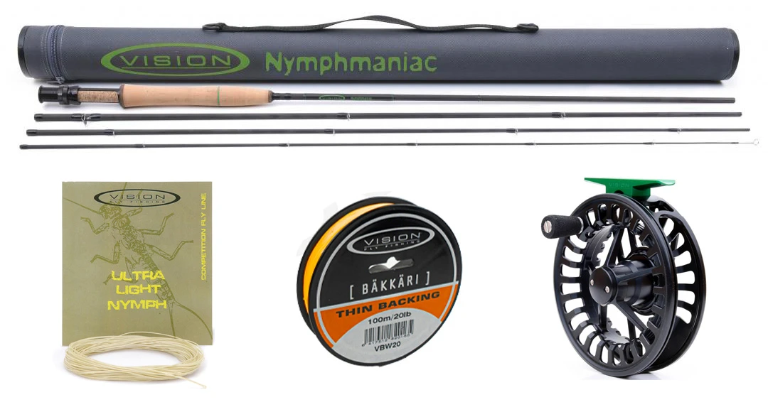 “De Vision Nymphmaniac voldoet aan de eisen van de meest veeleisende vliegvissers in een redelijke prijsklasse. Alles aan deze hengels is gemaakt met het beoogde doel in gedachten. De hengels zijn ontworpen om zo licht en gemakkelijk mogelijk te zijn. De blank stopt als het raken van een muur zonder al te veel trillingen tijdens het werpen, wat uiterst belangrijk is om een goed contact en gevoel te behouden voor lichte nimfen. Nieuwe en moderne nimfhengels hebben voldoende kracht in de top, zodat het haken van een vis moeiteloos is, maar tegelijkertijd voldoende buiging wanneer een vis plotselinge bewegingen maakt tijdens het drillen. Ook het drillen van een grotere vis is geen probleem met de kracht die uit het achterste gedeelte van de hengel komt. De perfecte uitrusting voor het vissen met nimfen is compleet met een lichte vliegenreel en de Vision Ultra Light Nymph-lijn.”