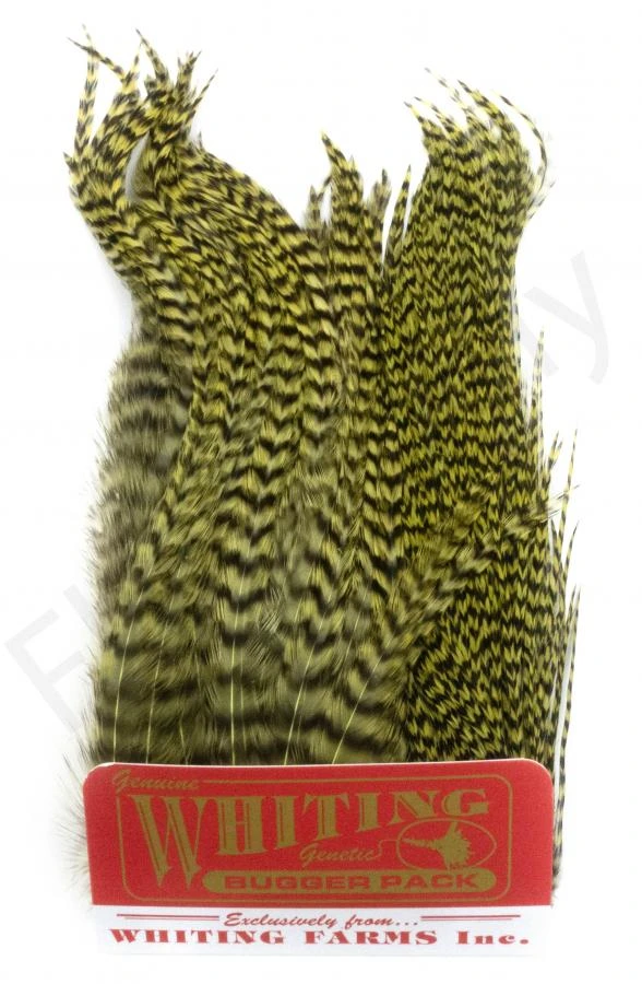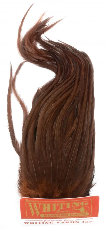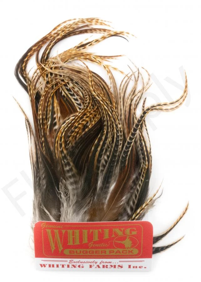 The Whiting Bugger Pack is designed for small streamers like Woolly Buggers. The Bugger Pack contains two different sized pieces which contains feathers in different sizes and lengths.